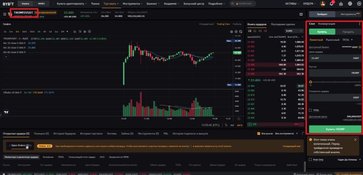 Bybit 平台上的 TRUMP **位于 Adventure Zone,这意味着它属于具有高回报潜力的高风险资产类别。这是为准备好应对高风险和波动性的投资者准备的部分,其中提供了与可能**损失投资相关的早期项目的访问权限。