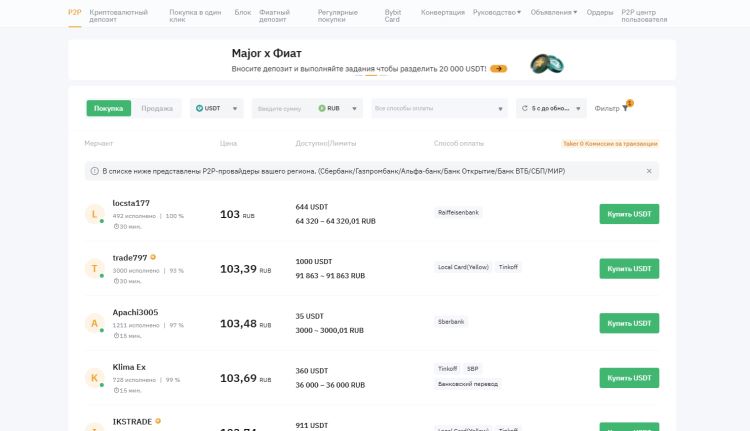 - 选择您想要购买 USDT 的出价,向卖家付款,并在您的 Bybit 钱包中接收 USDT。