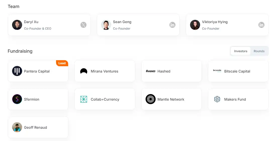 B3 的核心团队清一色 Coinbase 前员工:CEO Daryl Xu 干了 4 年业务开发,CTO Sean Geng 是 Coinbase 工程师出身,连融资都是 Coinbase 生态基金亲自站台。这种背景就像在简历上写「前阿里巴巴 P9」——投资人一看就**,直接砸了 2100 万美元种子轮。