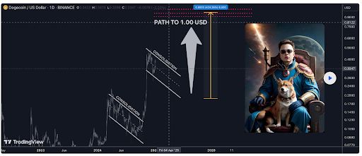 在一个TradingView帖子Project Syndicate对狗狗币的价格进行了预测,表明狗狗币可以达到心理预期1美元价格水平今年。具体而言,分析师随附的图表显示,最重要的模因币可能会在2025年中期达到这一价格目标;