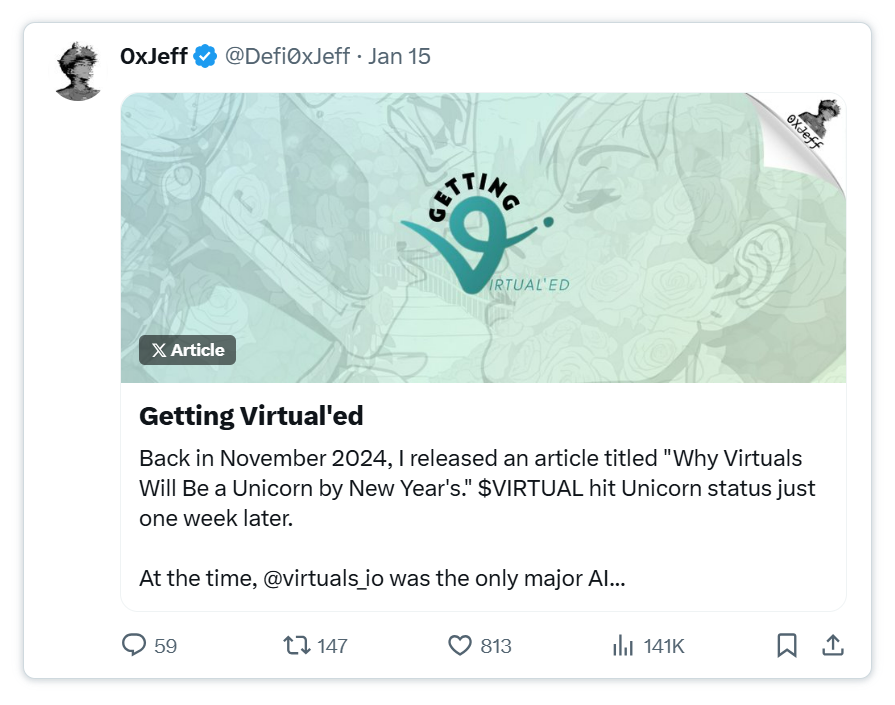 去年,@virtuals_io 率先将AI代理Token化,通过Token价值积累支持代理的创建、维护和训练,奠定了其在Base链上**AI代理分发网络的地位。