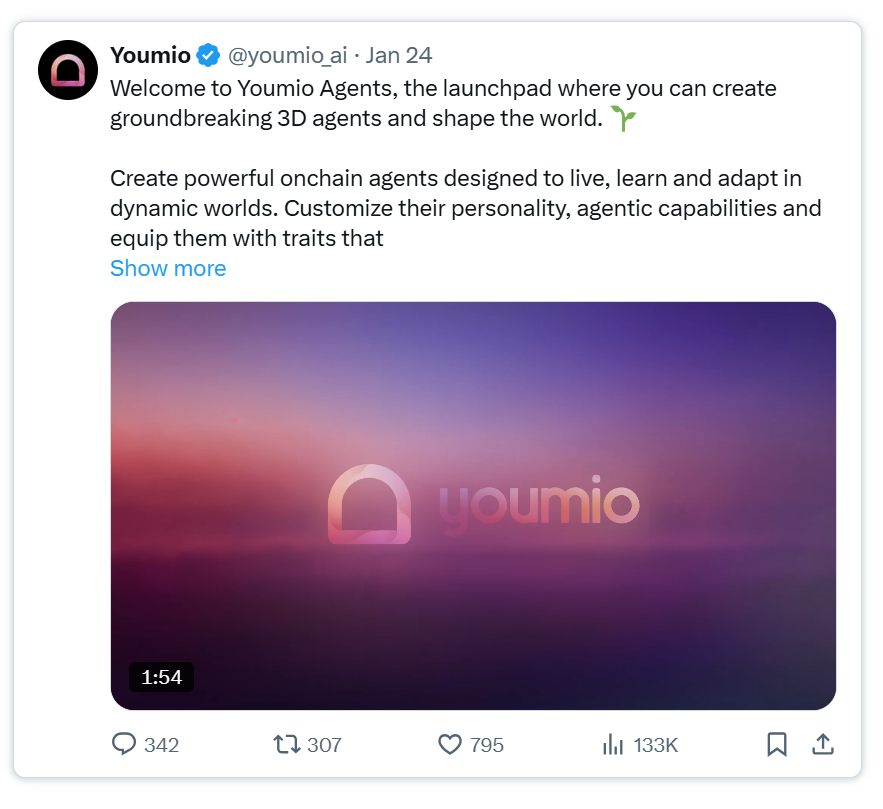 - @youmio_ai: 专注于为Virtuals和沉浸式游戏环境设计3D代理,其无代码构建工具和游戏优先策略使$LIMBO Token兼具框架和启动平台功能。