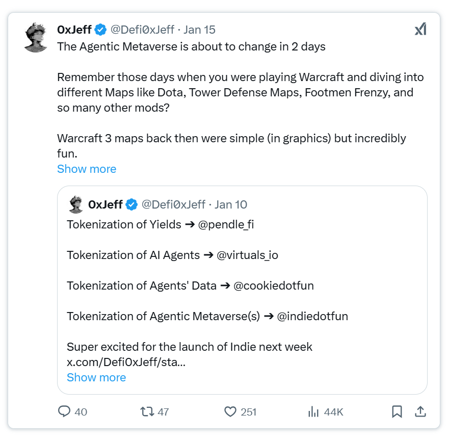 @indiedotfun专注于游戏创作者,简化包含动态AI代理的独立游戏创建,并通过Token化生态系统提供资金支持。其与@ARCAgents的合作,利用强化学习技术提升AI代理能力,增强玩家体验。