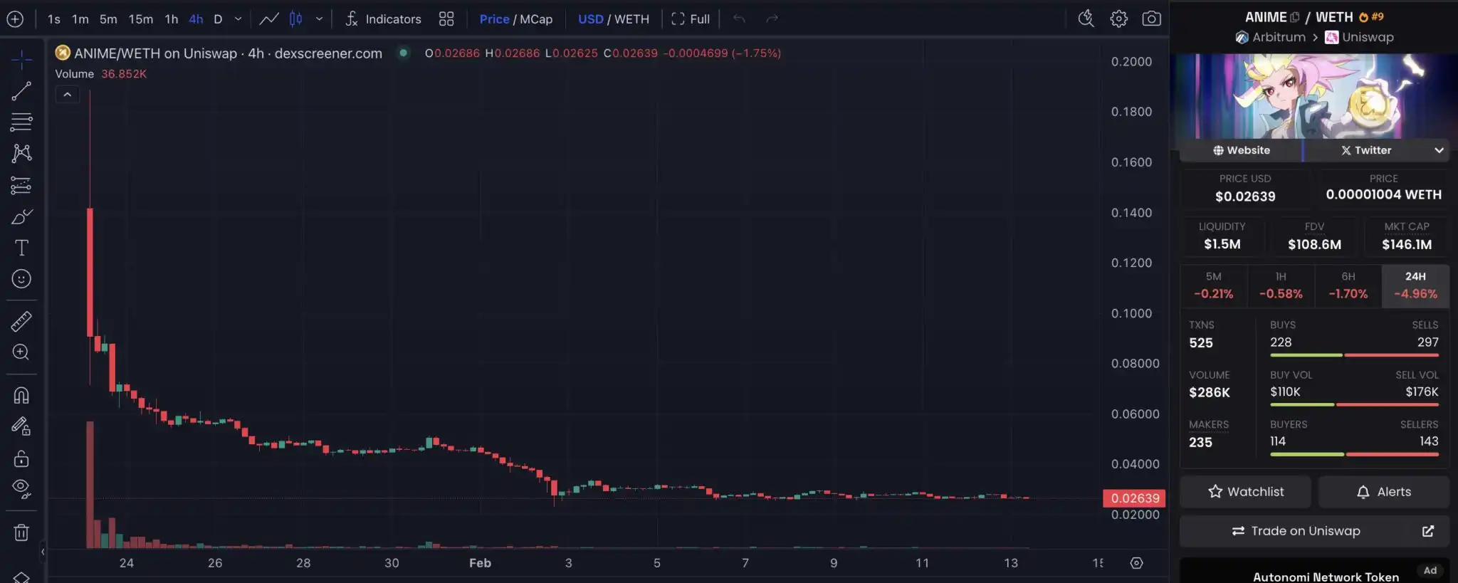 $ANIME 从高点回落超 85%
