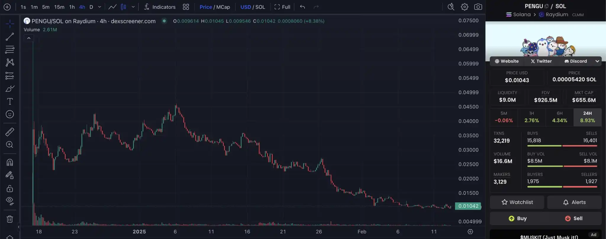 然而,这并不代表**能获利。例如,$PENGU 上线时的 FDV 一度超过 60 亿美元,但如今仅剩约 8 亿美元;$ANIME 也从 14 亿美元跌至目前的 2.7 亿美元,两者皆较高点回落超过 80%。因此,DOOD 上线后的市场表现仍充满不确定性,现在买入 Doodles 并不**能**不赔。