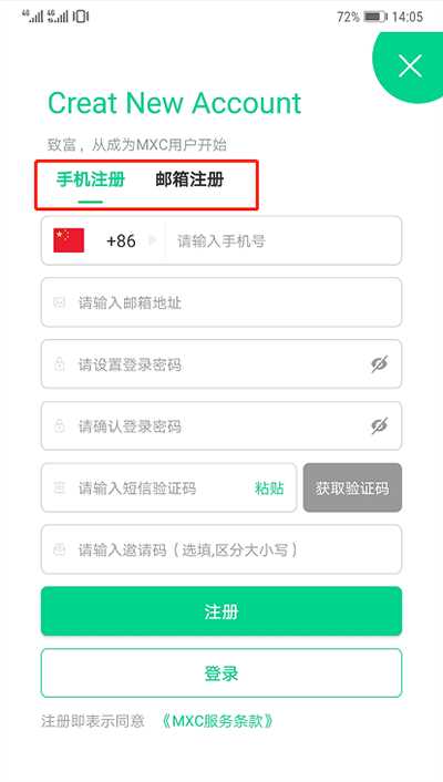 1.打开MXC PRO APP,点击注册。