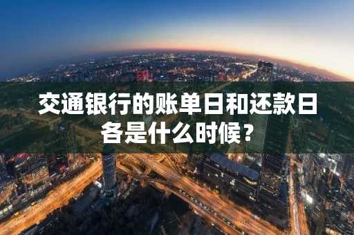 交通银行的账单日和还款日各是什么时候? 作者:LR •更新时间:2025-03-16 15:43:38•阅读 0 交通银行信用卡账单日可选择范围为每月的1到27号,持卡人可拨打客服电话400-800-9888,查询自己的账单日是什么时候。交行信用卡还款日一般在账单日后第25天。