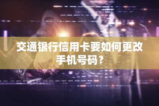 交通银行信用卡要如何更改手机号码? 作者:LR •更新时间:2025-03-18 13:44:24•阅读 0 你好,交通银行信用卡可通过网点柜面和信用卡客服**申请修改。信用卡客服**仅受理您旧手机仍在使用的情况,如旧手机号码已不再使用则只能通过交通银行网点柜面修改。