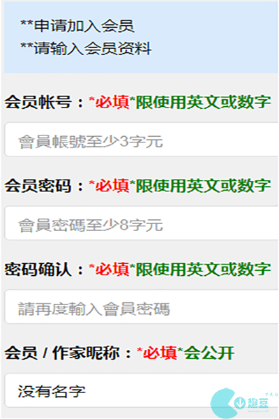 2、点击注册之后我们会跳转到另外一个页面,我们需要填写我们的会员账号密码(会员账号只能使用英文或者数字);