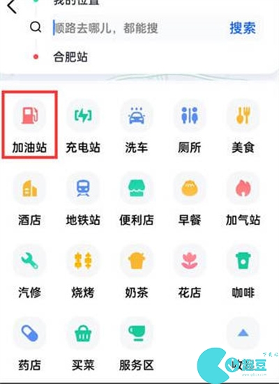 我们点击了顺路搜之后,然后我们点击里面的加油站或者其他你需要的地方。