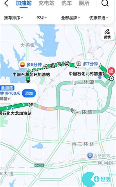 我们选择了加油站之后,然后我们就可以看到沿途的加油站了。