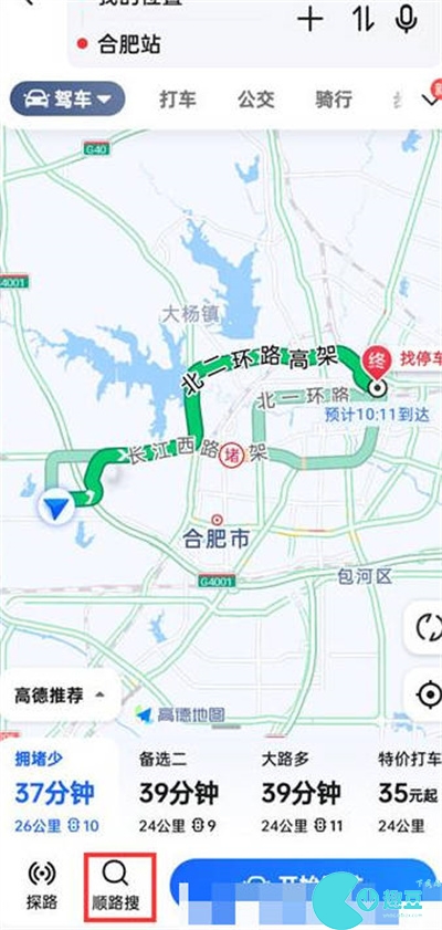 我们打开高德地图软件,然后我们输入我们的目的地,接着我们点击下面的顺路搜功能。