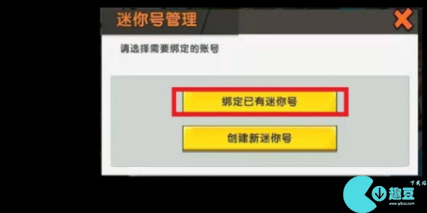 第三步:**点击绑定已有迷你世界账号就会出现新的界面;