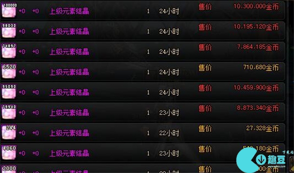在拍卖行中有着许多的元素结晶上架,玩家使用金币可以直接购买。