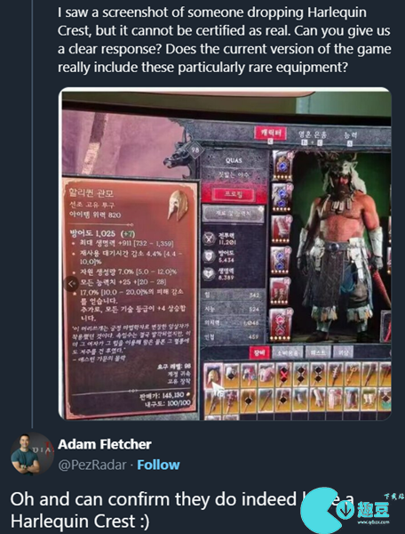 刷到它的是韩国主播drlee_kor,有截图,并有某韩国网站的数据记录。随后暴雪官方出面,全球社区总监亚当·弗莱彻回帖予以了证实,确实是全球**件军帽。这一件装备就比别人一身还要强,而且这么久了就他刷到这一件,可见该装备的掉率是有多低。