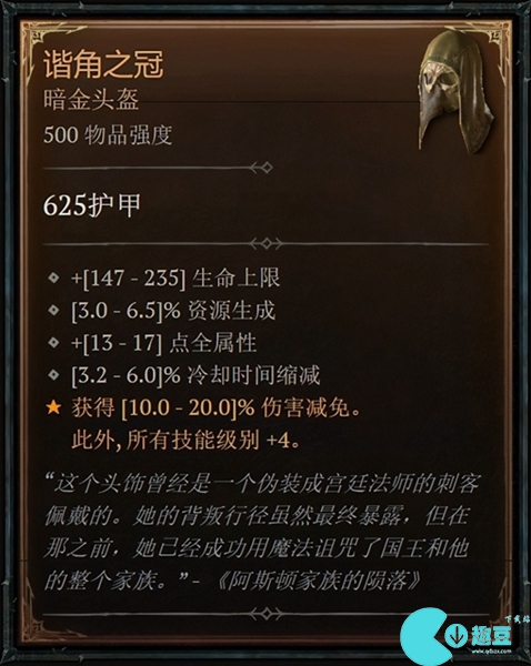 军帽也就是“谐角之冠”,是一件暗黑4中的神装。