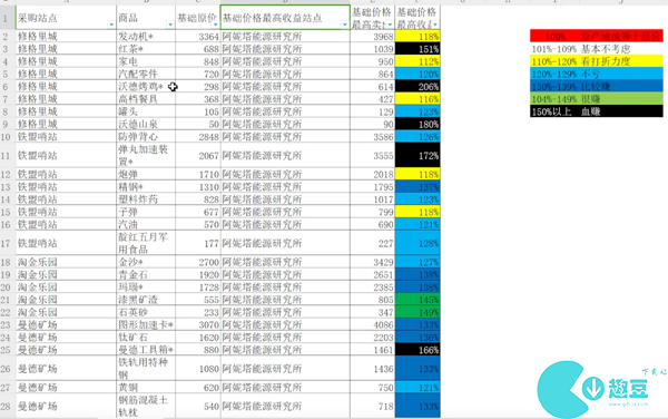 -货价区间**是在80%-130%之间,100-110%的商品可以少量出售,110-120之间的商品大量出售,120%以上的商品可以尝试梭哈