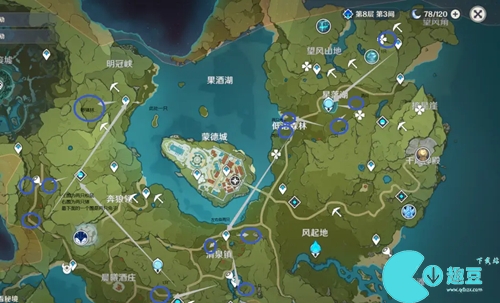 蒙德地区的野猪数量其实是非常多的,下面我给大家标注了一些可以击杀野猪获得兽肉的路线。