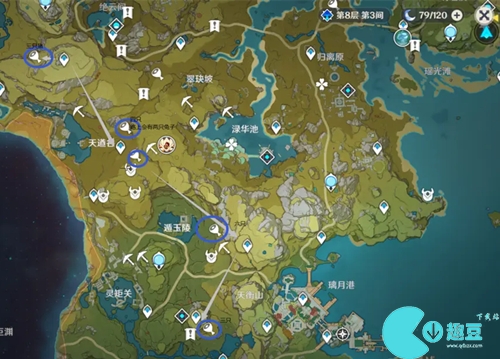 **这里为璃月最适合获得兽肉的路线,璃月的野猪数量也是不少的,推荐玩家可以从上往下走过来击杀。