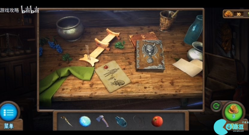 28、回到树屋查看操作台,应用【图章】盖在魔法书的凹槽上,开启魔法书得到【墨水**】【锁匙】和【平安符】。