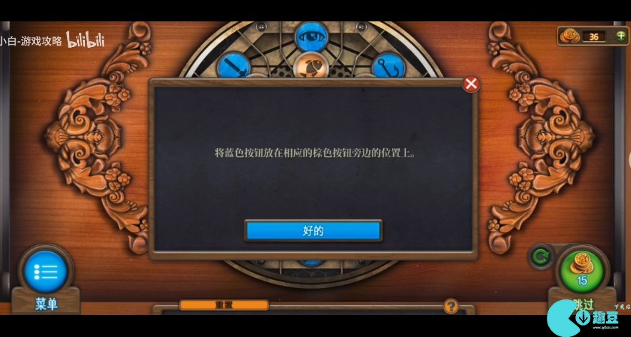 262、进到列车包间应用【锁匙】打开下边的箱门,进行小游戏(将对应色调的晶石,摆在彩色圆形前面的一排)获得【白朗姆酒】和【纽扣1】。