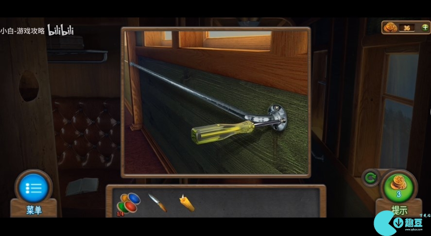 257、点击列车右侧的窗帘获得【干毛巾】【碎片1】【罗马杆】。