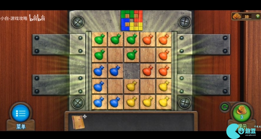 233、查询火炉上方奖牌,将中间奖牌放翻得到【火柴】。