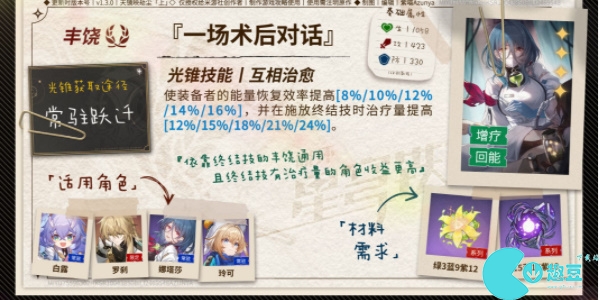 这个光锥提供了大量能量回复效率和限定在终结技上的**提高,虽然不能覆盖玲可的所有**手段,但有效**了玲可的终结技循环压力,提高了群体抬血的能力。