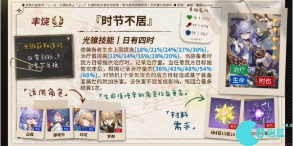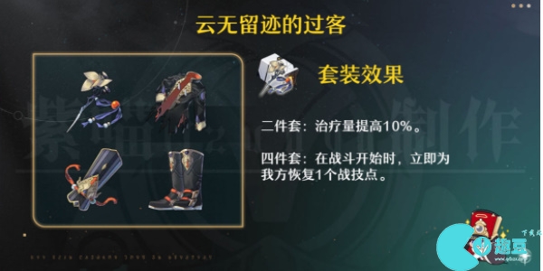 该套装二件套提供**量提高,玲可的每种**手段都可以获得增益,****压力,四件套可以开局为全队提供1个战技点,非常适合开局缺战技点的队伍。