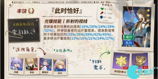 该光锥提供了大量效果抵抗,和一部分基于效果抵抗数值的**量提升。在当前版本高难攻坚的敌人控制手段非常多的环境下,还是可以使用这个光锥来避免玲可因为多次被控而损失**机会。