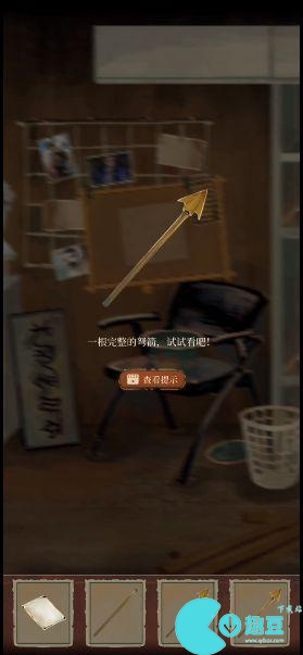 9、我们组合箭头与小棍,把细绳与4支箭安装上弩。