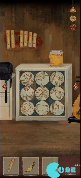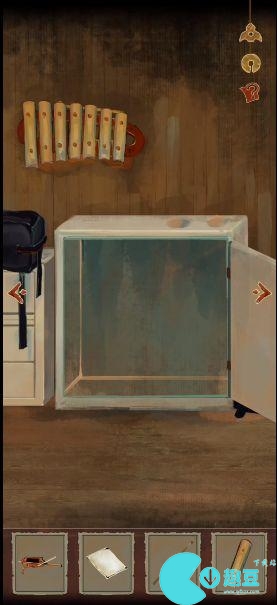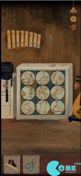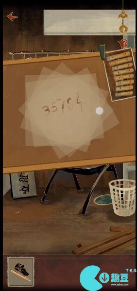12、我们把两个琴键安装到钟琴上,用刀柄敲击钟琴,密码:35784,拿起掉落的剪刀。