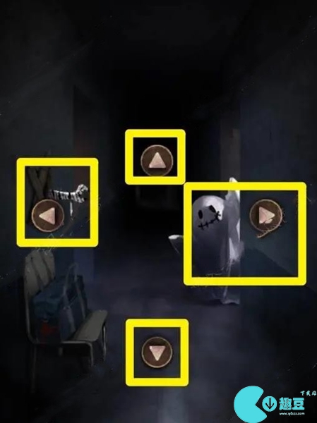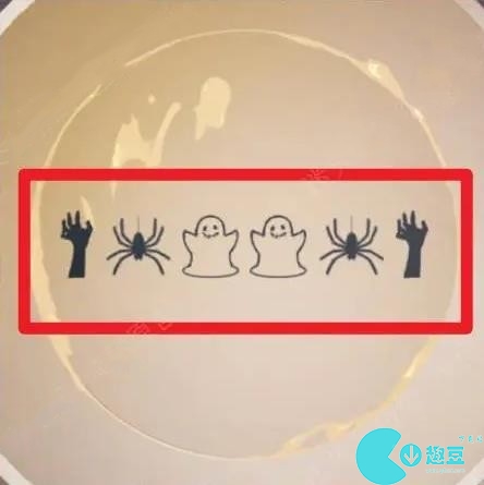 9、鬼屋里有几个图标,选红框冰淇淋,就按照手、蜘蛛、幽灵、幽灵、蜘蛛、手的顺序进行探索,选黄框冰淇淋的,按照左上右右上左的方向探索。