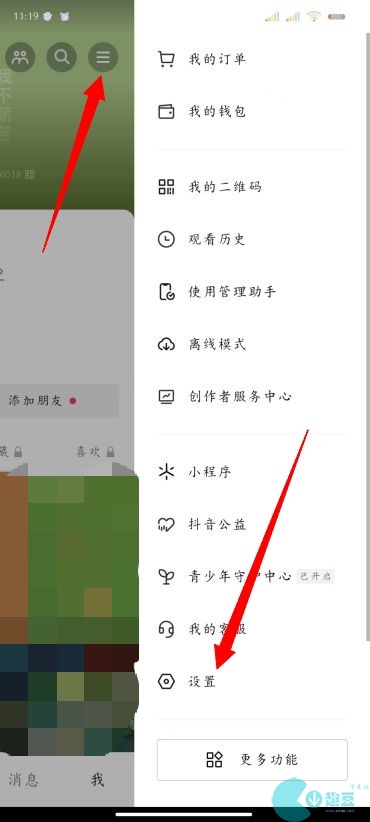 2、进入个人页面之后在点击右上角三,在弹出页面当中点击设置。
