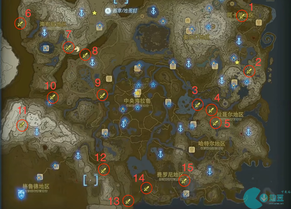 2、二星需要的5个大剑蘑菇,玩家可以在图中的区域中找到所需要的蘑菇。