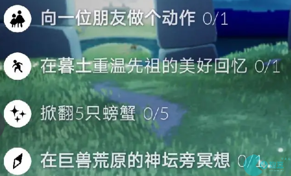 光遇6月5日,光遇6月5日每日任务已经刷新了,今天的任务主要是在墓土完成, 任务内容为向一位朋友做个动作、在墓土重温先祖的美好回忆、掀翻5只螃蟹、在巨兽荒原的神坛旁冥想,还没有完成的小伙伴快来和小编一起看看吧!