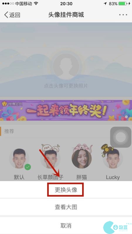 4、屏幕下方弹出选项,点击选择“更换头像”,即可更换微博头像。