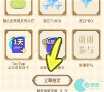 3、我们把任务完成之后,就可以获取到三次的**机会,我们把三次全用完之后就可以获取到原石80和其他奖励。