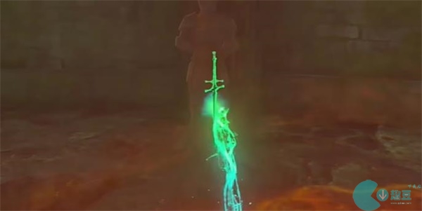 3、我们使用究极手把剑放置在石像的手上,就可以打开通往竞技场遗迹的洞窟的大门。
