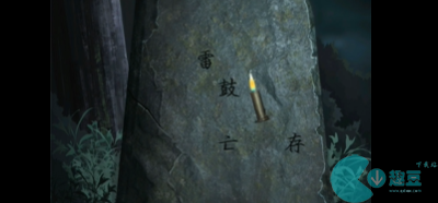 3、根据右边墙上的线索,点击左边树下的石头,用点燃的蜡烛获取门口的线索:雷鼓亡存