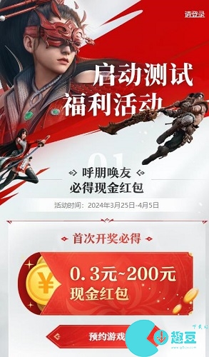第二步:在“启动测试福利活动”页面中点击“请登录”。