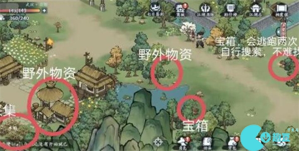 6、地图右侧有着两个宝箱,中间还有两个野外物资可供选择。