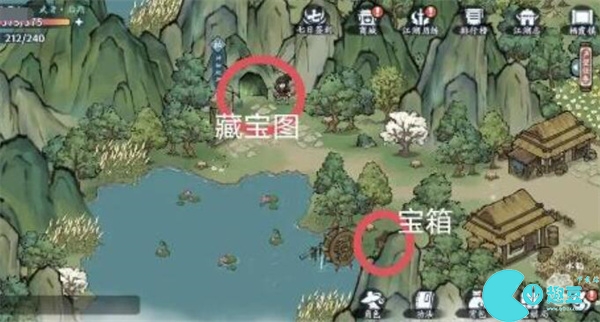 1、地图右下角能够看见宝箱,左边还有藏宝图和试炼任务。