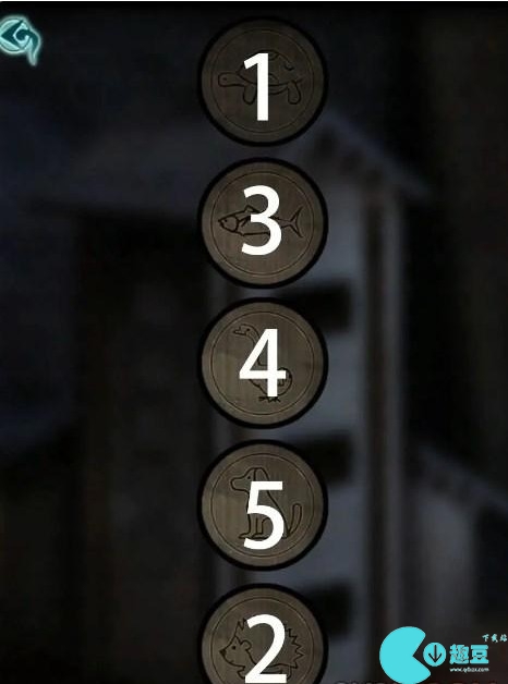 8.查看一下左侧的小房子一样的东西,侧边有五种动物,那么对应到谜语上就能猜到依次是龟-刺猬-鱼-大白鹅-狗,话说粽子脸过分了啊,狗狗那么可爱哪有像粽子啊!总之就按照龟-刺猬-鱼-大白鹅-狗的顺序点下小房子机关,弹出来一块砚台。