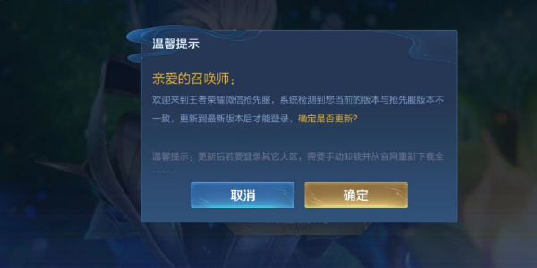 4、提示玩家需要将客户端更新到**版,点击更新即可。