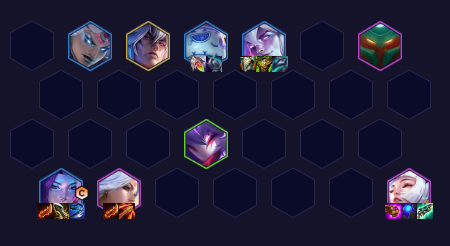 具体的站位安排需要根据每局游戏的实际对手和其站位来进行微调,通常而言,将锤石、阿木木、俄洛伊和诺提勒斯等前排英雄布置在战场前方,后排布置厄斐琉斯、艾希、辛德拉和千珏,保证输出英雄的安全并充分发挥狙神羁绊的作用。