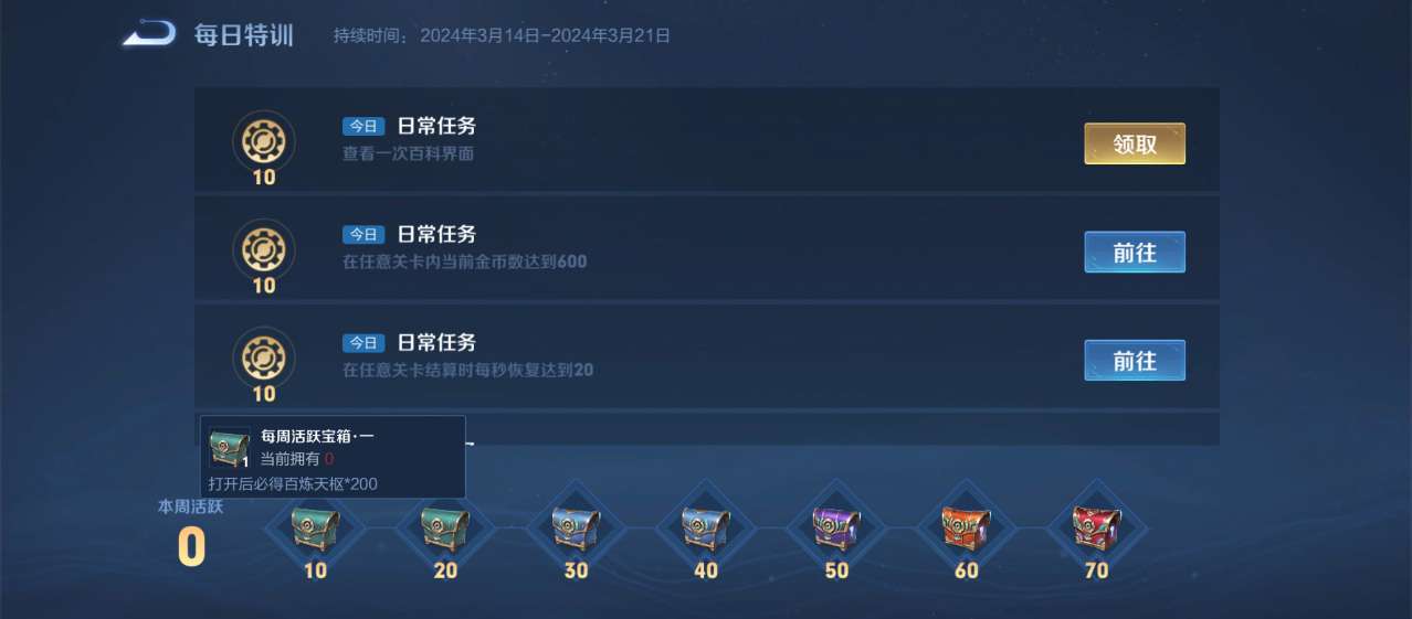 4、通过关卡后会获得百炼天枢,而且完成每日任务后可以获得相应的宝箱,打开即可获取百炼天枢。