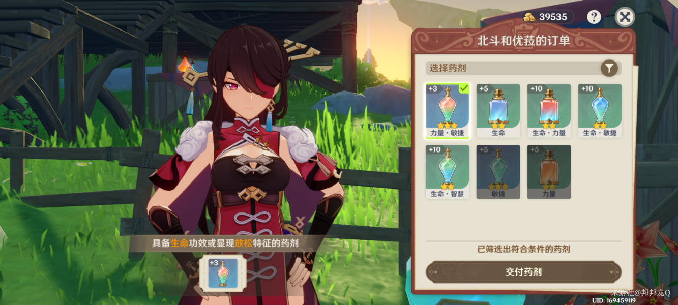 然后去药材培育处收获,种植,再去货架上架和升级药剂,结束这一周期,这时候会有一个特殊订单,直接按照符合要求内**级的交付就行了。