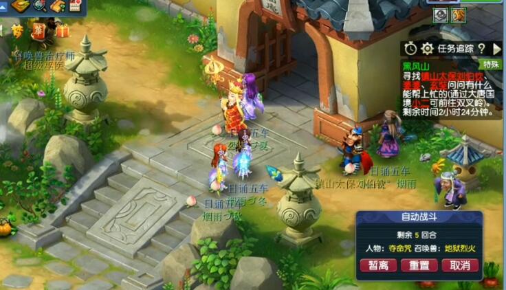1、玩家进入副本后找太保和婆婆各完成5个小任务,然后找玄奘抄5次佛经。抄完后先别点开始,这里要同事操控5个号,比较繁琐,等站好位置再点开始;
