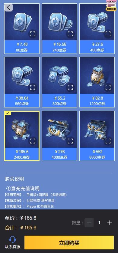 里面有ID直充和代充等选择,可以直接购买点券、账号以及金币号等,